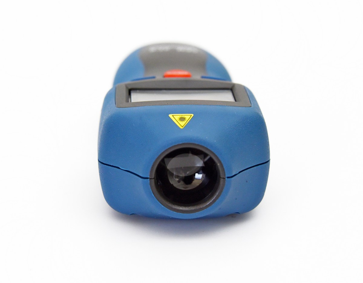 Для замера оборотов двигателя автомобиля расположите устройство на расстоянии от 50 до 200 сантиметров от маркировки. Убедитесь, что область между лазером и отражающей поверхностью свободна от препятствий.