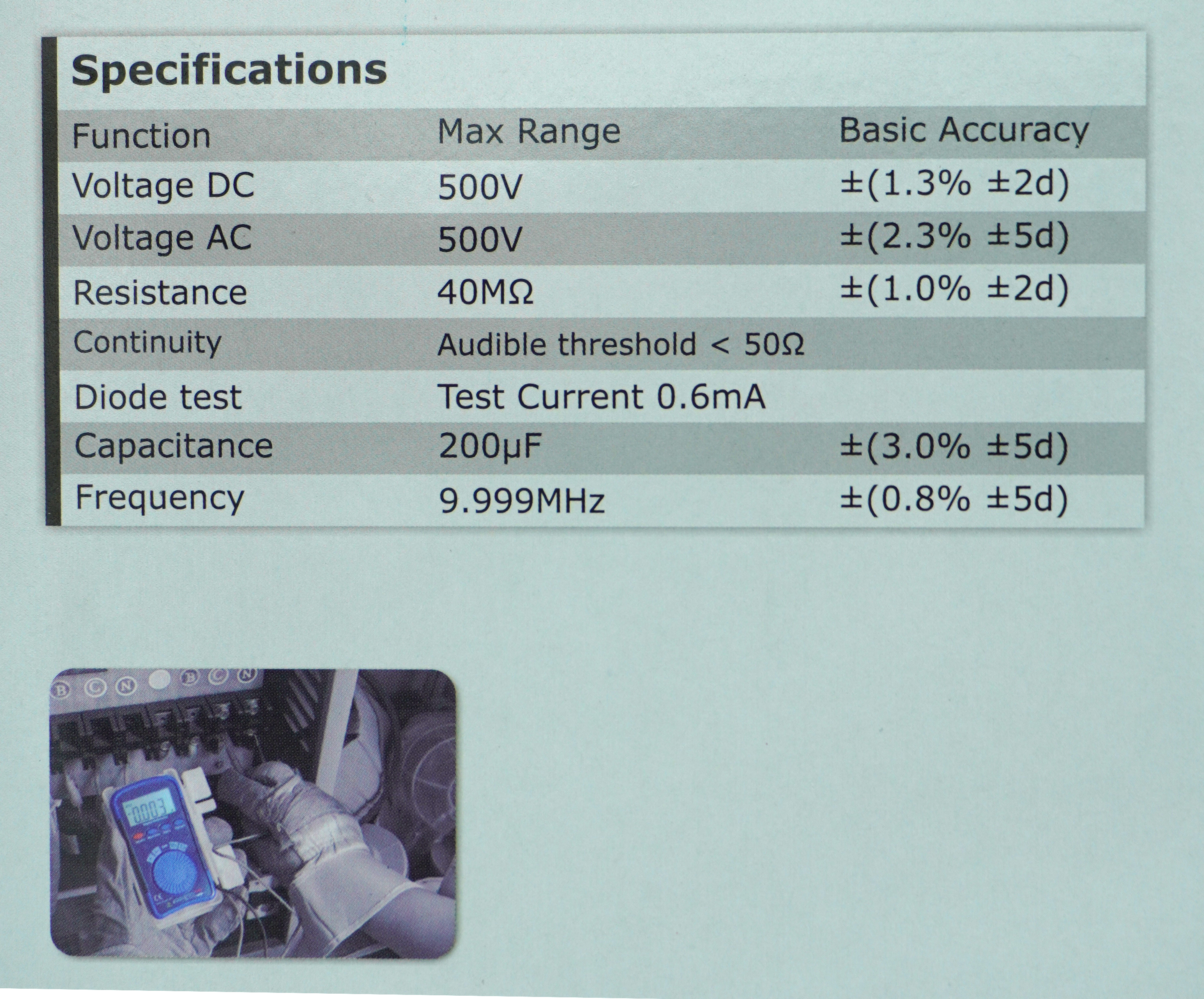 Технические характеристики: диапазон измерений до 600 В и 10 А, поддержка тестирования диодов и непрерывности цепи. Используйте DT-111 в разных сферах: от домашнего использования до профессиональной электроники.